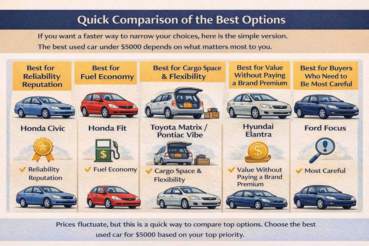 If you want a faster way to narrow your choices, here is the simple version. The best used car under $5000 depends on what matters most to you.