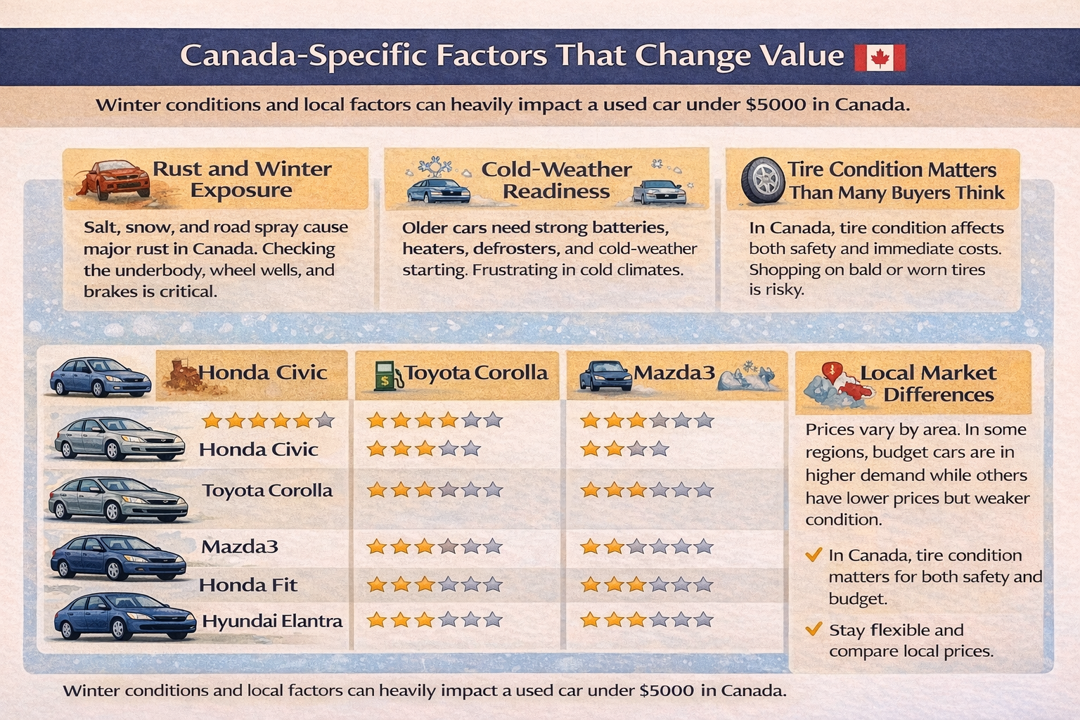 The Canadian market also varies by region. Rust exposure, winter use, road conditions, and local demand all affect what $5000 can actually buy.