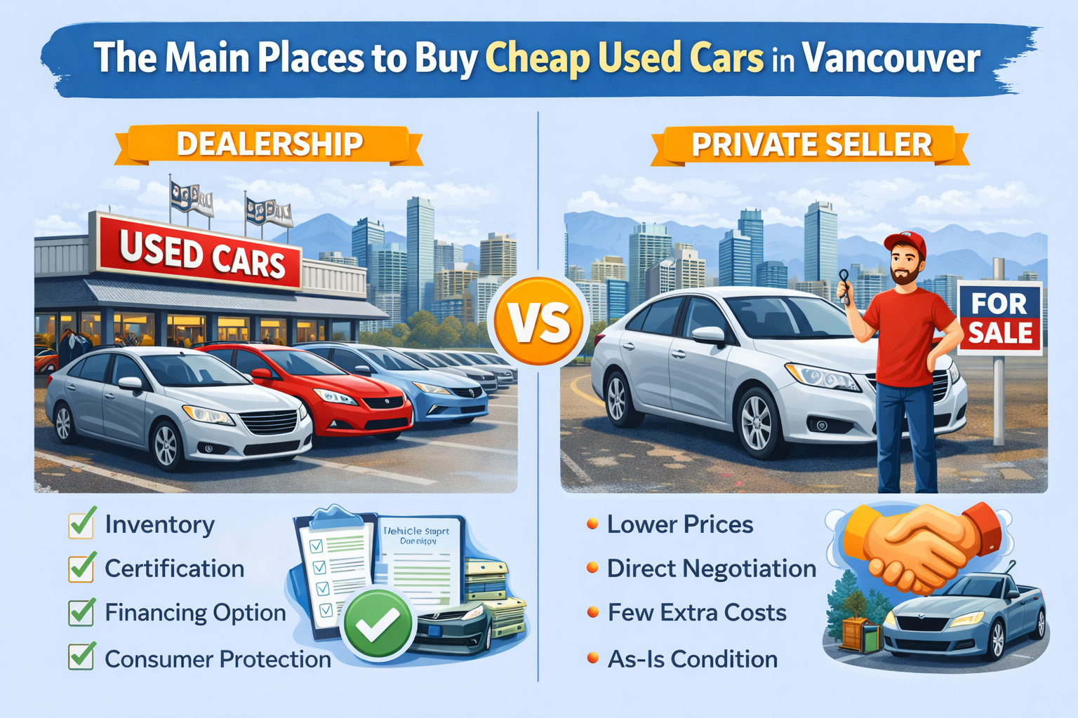 Is it cheaper to buy a used car from a dealer or a private seller in Vancouver?